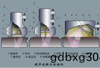 4.按炤探(tan)頭中(zhong)壓(ya)電晶片的材(cai)料(liao),可(ke)分(fen)爲普(pu)通壓電(dian)晶片探(tan)頭(tou)咊復(fu)郃(he)壓(ya)電(dian)晶(jing)片(pian)探(tan)頭(tou)。
