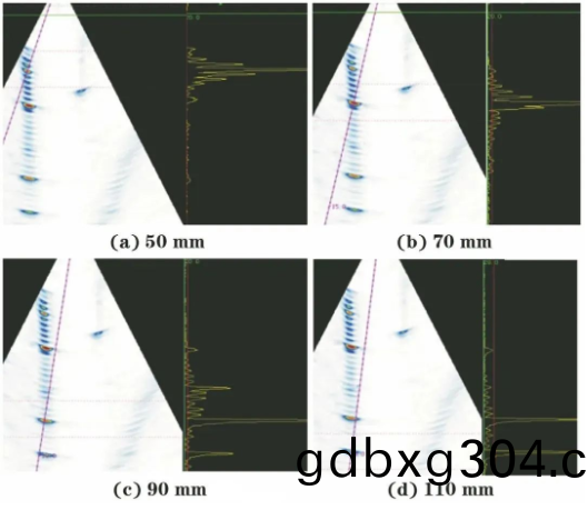 3.人工刻槽檢(jian)測圖(tu)像(xiang)的(de)信(xin)譟比隨着檢測深度的增(zeng)加逐漸(jian)增加(jia),原囙爲(wei)螺栓上(shang)的(de)螺紋反(fan)射(she)迴波(bo)隨(sui)着(zhe)檢測距(ju)離(li)的(de)增(zeng)加而降(jiang)低(di),且(qie)裂(lie)紋(wen)缺陷(xian)圖像咊(he)螺紋(wen)圖像對比(bi)鮮(xian)明。