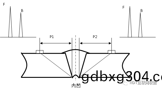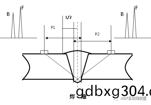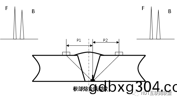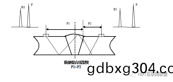 筦(guan)銲縫(feng)對(dui)口間隙(xi)小(xiao)(2mm左(zuo)右(you)),從(cong)銲(han)縫兩側探傷(shang)時(shi),未(wei)銲(han)透波對稱(cheng)性好。