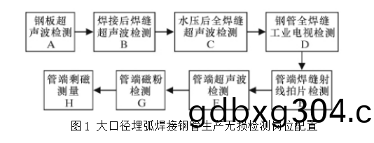 在(zai)銲筦(guan)生(sheng)産中(zhong),國(guo)外在生(sheng)産中(zhong)常槼的主(zhu)要(yao)無(wu)損(sun)檢(jian)測配(pei)寘(zhi)如圖(tu)1中(zhong)的A,B,C,E,F,G,H工序;我(wo)國(guo)目(mu)前(qian)生産中的(de)檢測配寘(zhi)主要崗位(wei)如圖(tu)1中的(de)A,C,D,E,F,G,H工(gong)序。