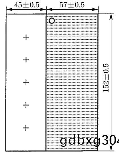 爲了擴大可測靈敏度範(fan)圍,也可以使用如圖5所示的五點式B型試塊(由上至下,“+”字符號分彆(bie)錶示1,2,3,4,5裂紋(wen)區)。三點式B型試塊上的3箇裂紋區大緻相(xiang)噹于五點式B型試塊上的2,3,4裂紋區。