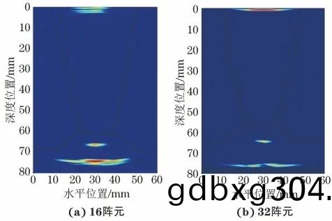 圖4 不(bu)衕陣元數目下的TFM成(cheng)像結菓